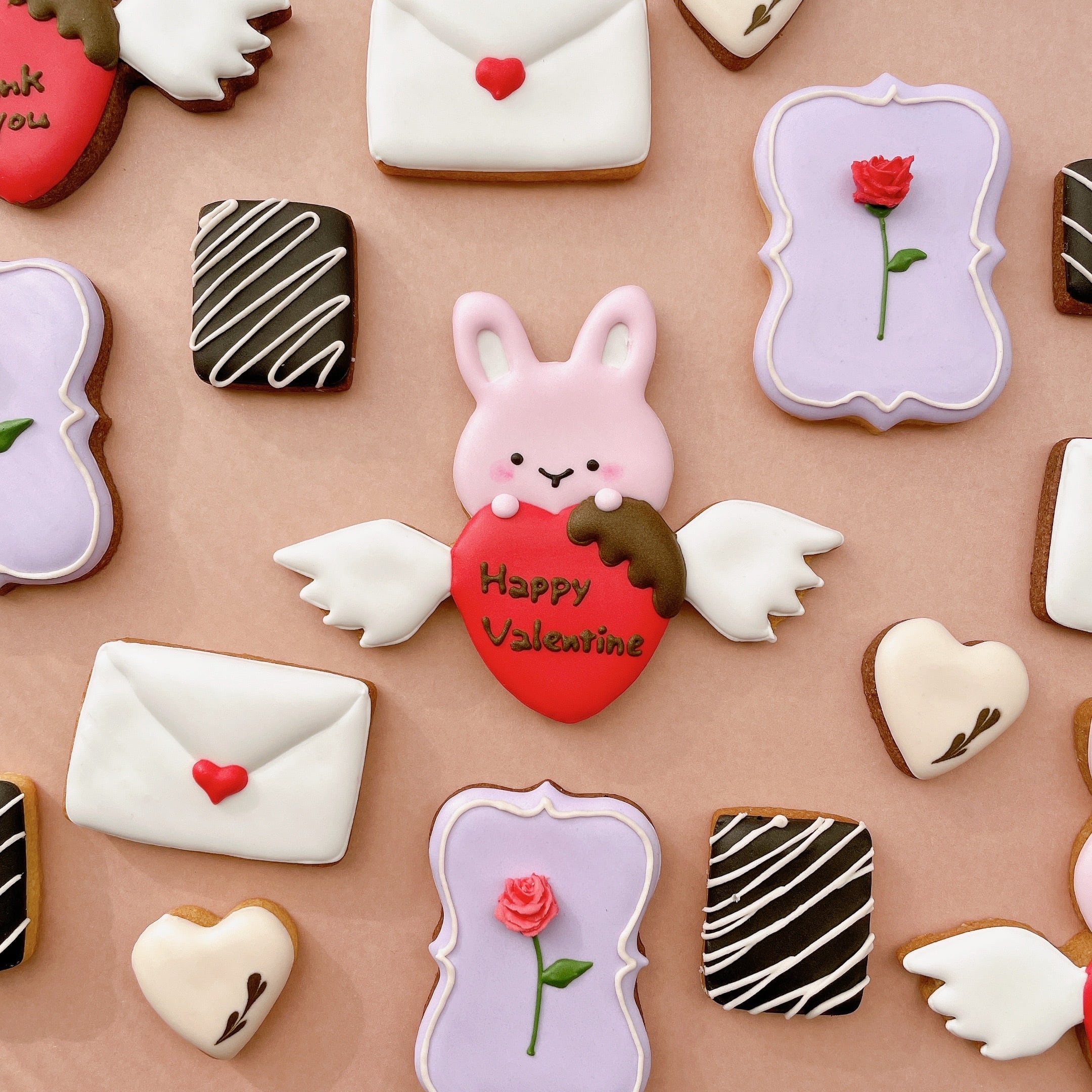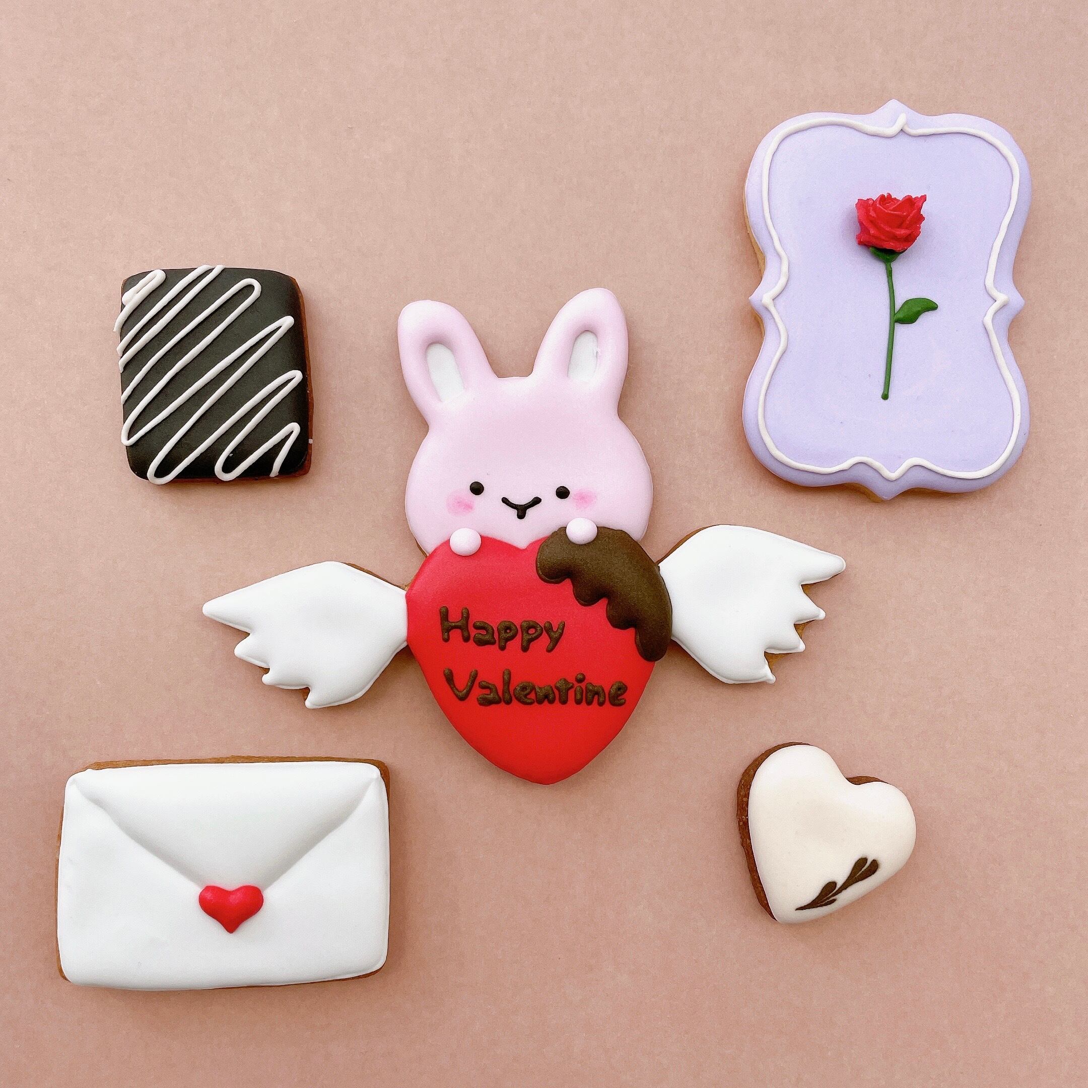 チョコレートと一緒に気持ちを伝えるうさぎちゃんをモチーフにした、バレンタインにぴったりのアイシングクッキーです。